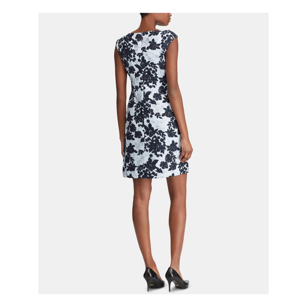 Ralph Lauren Ralph Lauren Womens Navy Floral Sleeveless Jewel Neck Above The Knee Shift Formal Dress Size 16